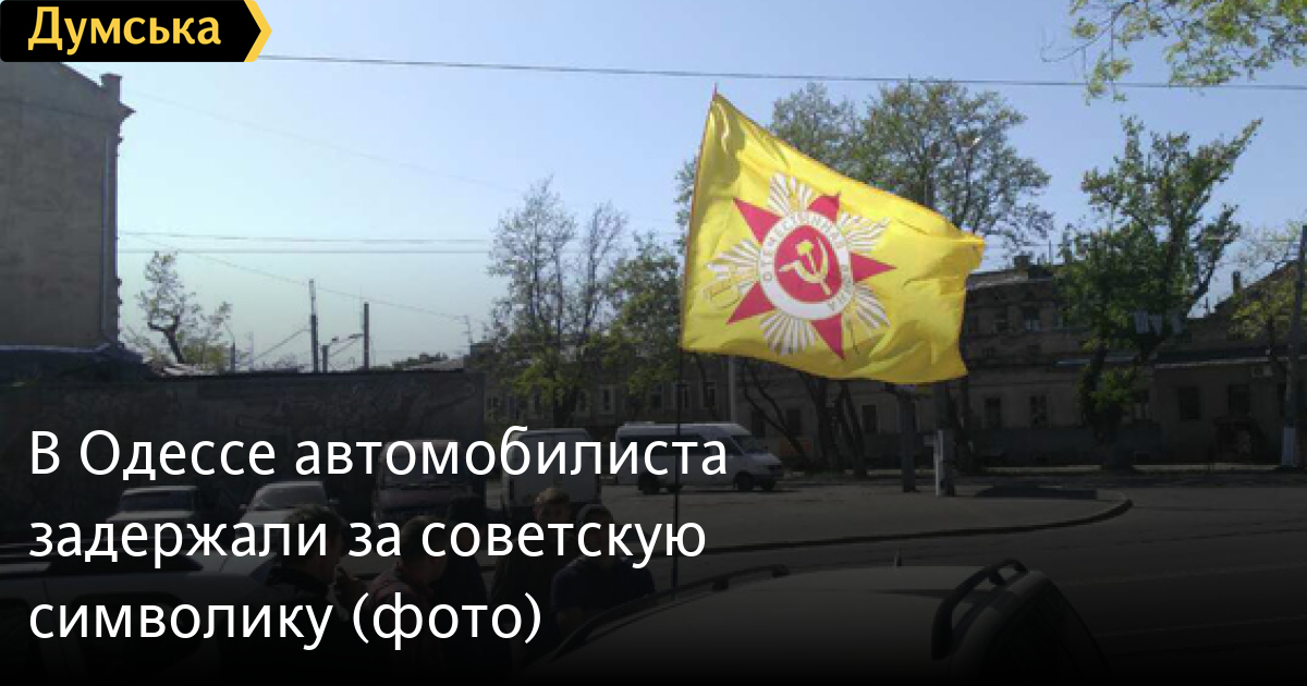 «По прибытию полицейские обнаружили автомобиль с иностранной регистрацией, к которому был прикреплен флаг с изображением красной звезды, серпа и молота, а также надписью «Отечественная война». Для установления обстоятельств происшествия водитель и транспортное средство доставлены в Хмельницкий ОП», — говорится в сообщении.