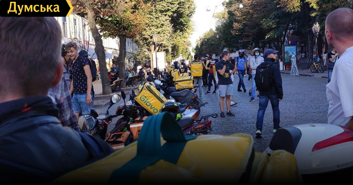 В Одессе протестуют курьеры служб доставки «Глово» и «Ракета»