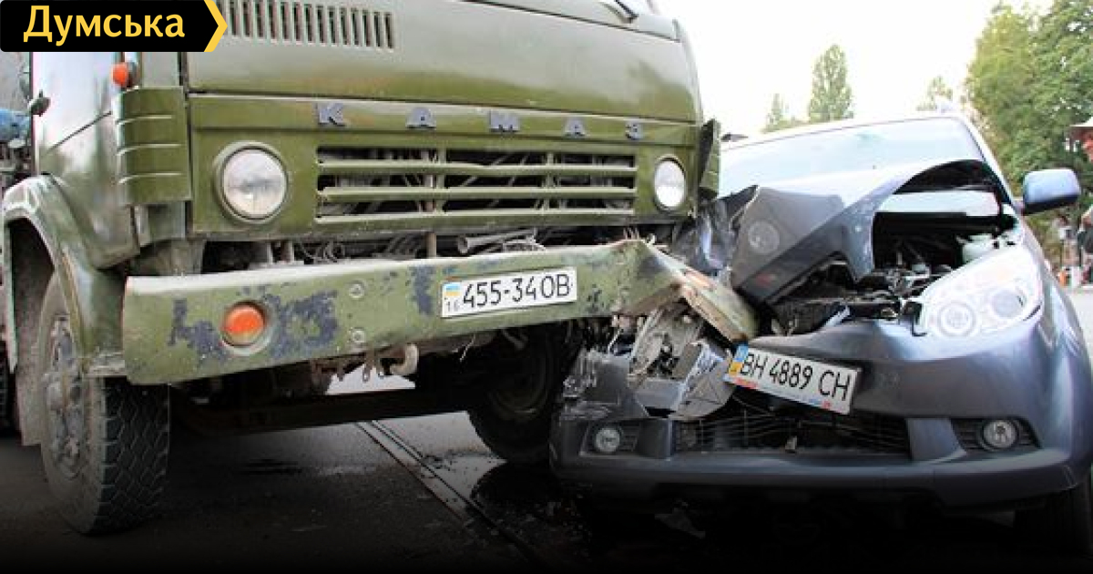 Об этом пишет «Таймер». Как сообщают очевидцы, иномарка двигалась по улице Комарова в сторону площади Толбухина, и на перекрестке столкнулась с автомобилем КАМАЗ, который двигался в том же направлении по Люстдорфской дороге.