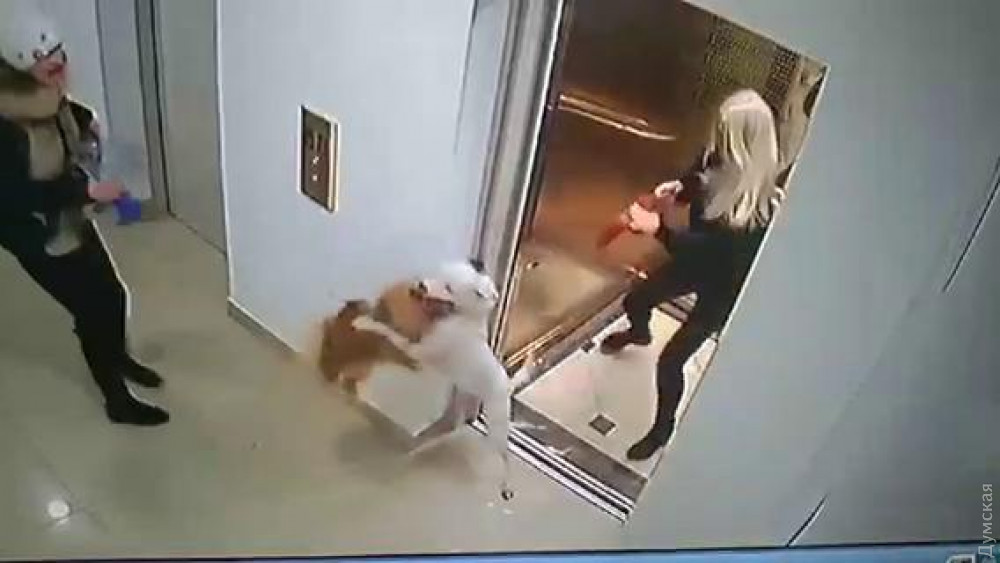 Как сообщают пользователи соцсетей, хозяйка со шпицем хотела войти в лифт, и когда двери открылись, из него выпрыгнул бультерьер и тут же схватил шпица.