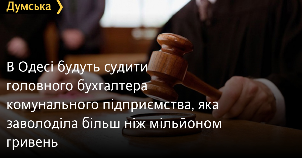 Обвинувальний акт стосовно колишнього головного бухгалтера одного з комунальних підприємств Одеської міської ради за фактом розтрати бюджетних коштів (ч. 5 ст. 191 КК України) скерувала до суду Приморська окружна прокуратура Одеси.