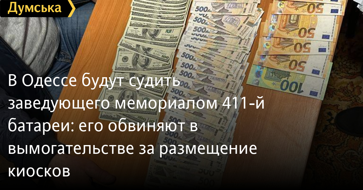 Он требовал от предпринимателя взятку за размещение на территории мемориала торговых павильонов. За 5 000 долларов он обещал посодействовать в согласовании договора с одним из структурных подразделений Одесского областного совета. Сумма зависела от количества объектов и места их расположения.