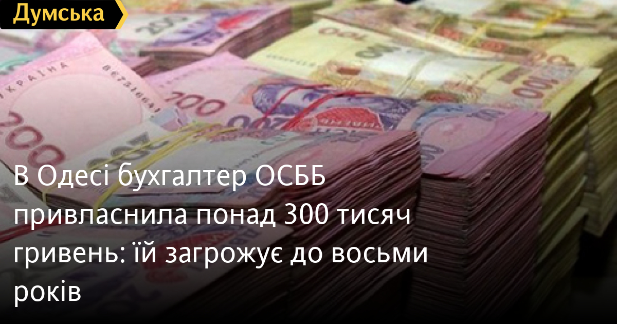 В Одесі бухгалтер ОСББ привласнила понад 300 тисяч гривень: їй загрожує до восьми роківУ заволодінні 320 тис. гривень підозрюють бухгалтера одного з об'єднань співвласників багатоквартирних будинків (ОСББ) Одеси. Як повідомили в пресслужбі поліції області, 67-річна жінка за допомогою ключа доступу до банківських рахунків, який їй передала голова правління для роботи, переказувала гроші з рахунку ОСББ на свій особистий, і розпоряджалася ними на свій розсуд. Зникнення грошей виявила голова об'єднання і звернулася в поліцію. Правоохоронці провели обшук у підозрюваної та знайшли комп'ютер з інформацією, що підтверджує угоди. Одеситці повідомили про підозру за ч. 4 ст. 191 Кримінального кодексу України. Санкція статті передбачає покарання у вигляді позбавлення волі на строк від п'яти до восьми років з позбавленням права обіймати певні посади чи займатися певною діяльністю на строк до трьох років. Помітили помилку? Виділяйте слова з помилкою та натискайте control-enter Новини по цій темі: 29 липня 2025: В Усатово Одеської області сталася перестрілка: поліція працює на місці (відео, оновлено) 28 липня 2025: П'яний на "Ягуарі" або гіпертонік? Звільнений топ-посадовець одеської поліції хоче повернутися на службу 19 червня 2025: Дівчинку, яку шукали сотні одеситів, знайшли вбитою: поліція працює з чоловіком, ймовірно причетним до загибелі 27 травня 2025: Увели гектар в університету: на Одещині засудили земельних аферистів, але без посадки і Хвоста |