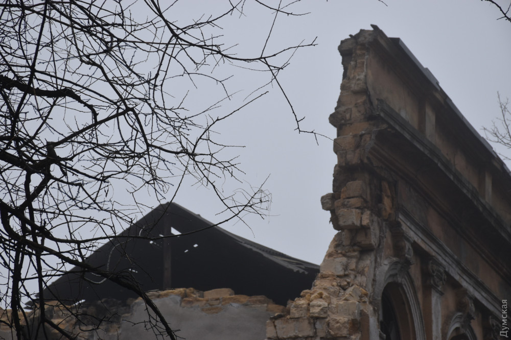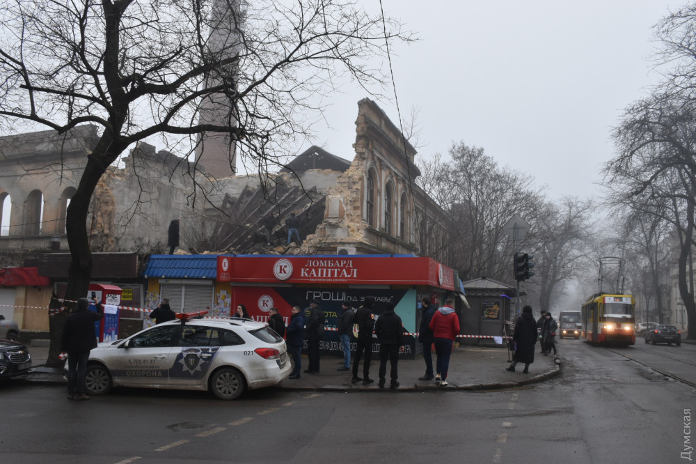 Обрушение фасадной стены и крыши двухэтажного старинного здания бывшей фабрики мороженого «Полярная звезда» произошло сегодня ночью на углу Старопортофранковской и Торговой улиц Одессы.
