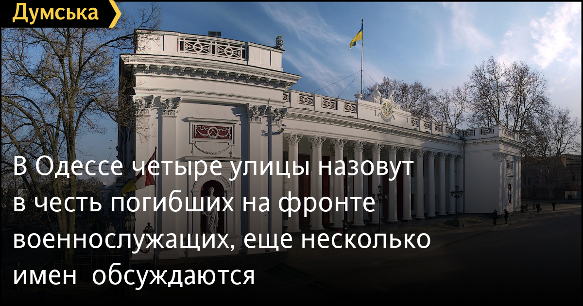 Члены историко-топонимической комиссии Одесского горсовета на заседании 31 августа приняли решение рекомендовать депутатам на сессии переименовать четыре улицы в честь погибших на фронте защитников Украины.