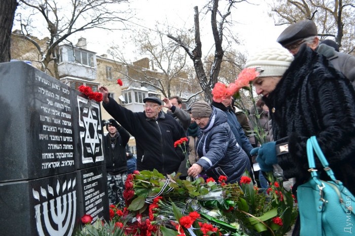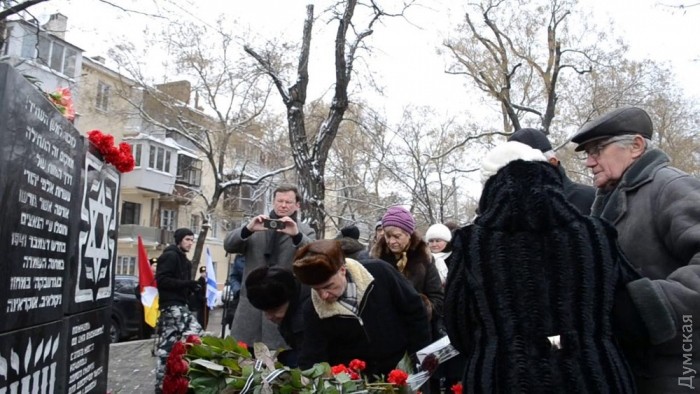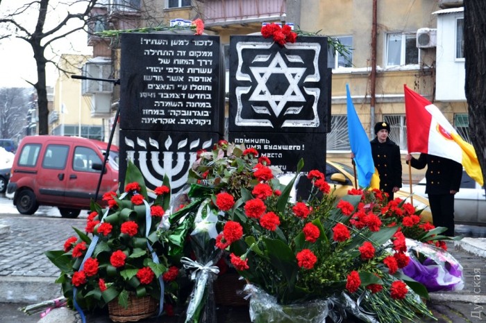 В День памяти жертв Холокоста в Одессе возложили цветы к памятному знаку «Дорога смерти», расположенном в Прохоровском сквере. В память о шести миллионах убиенных зажгли шесть поминальных свечей.