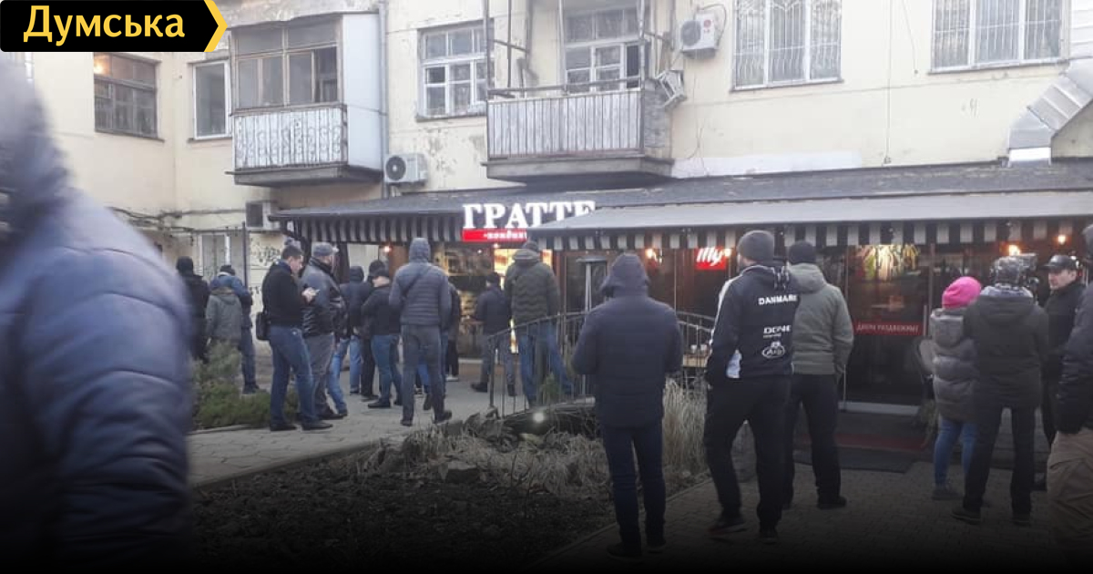 За деревьями не видят леса: к одесскому кафе пришла целая армия из-за якобы незаконного козырькаЛюбопытная история произошла сегодня на проспекте Шевченко. Группа крепких мужчин, весьма похожих на титушек, пыталась добиться от кафетерия «Гратте» выполнения закона. В этой истории прекрасно все. Несколько десятков молодчиков прибывают к кафе и берут его в осаду. Сначала все думают, что это бандитский наезд, кто-то лихорадочно набирает 102, но тут оказывается, что мужчины — сотрудники муниципального управления развития потребительского рынка и защиты прав потребителей. Они заявили, что прибыли демонтировать козырек, который якобы самовольно установило кафе, и сослались на решение исполкома годичной давности. Проклятый козырек! Всем мешает! Огромные «летние площадки» ресторанов, больше напоминающие пристройки, не мешают; высотки на склонах не мешают, незаконные мансарды на памятниках архитектуры не мешают, а ради козырька, который, кстати, совсем не уродует здание, а даже наоборот, пригнали целую армию. Впрочем, владельцы «Гратте» оказались тоже не лыком шиты. Сразу после прибытия мэрских титушек к кафе заявился такого же вида контингент защитников заведения. Вместе с представителем собственника по имени Казбек Икаев. Он заявил, что «Гратте» «получило разрешение архитектуры и идет согласование документов». То есть все законно. Правда, по словам Икаева, хозяин «не рассчитался», отсюда и наезд. В общем, чисто одесская история. Злополучный козырек, кстати, так и не снесли. Фото Валентины Мазепы СМЕРТЬ РОСІЙСЬКИМ ОКУПАНТАМ! Помітили помилку? Виділяйте слова з помилкою та натискайте control-enter