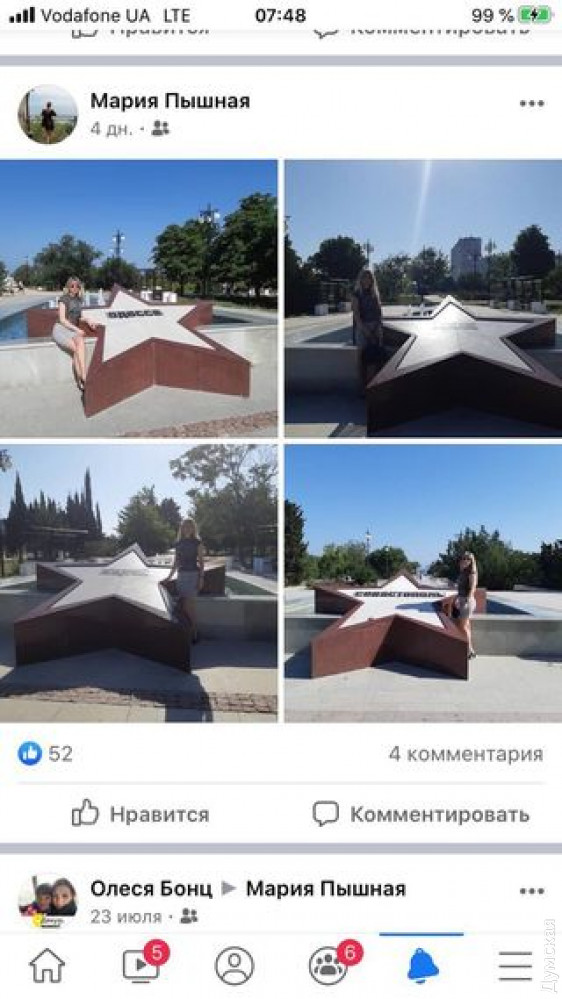 На странице Пышной в Facebook обнаружили свежие фотографии из Севастополя. Когда ситуация получила огласку, она удалила посты о крымском отдыхе.