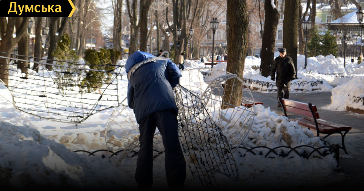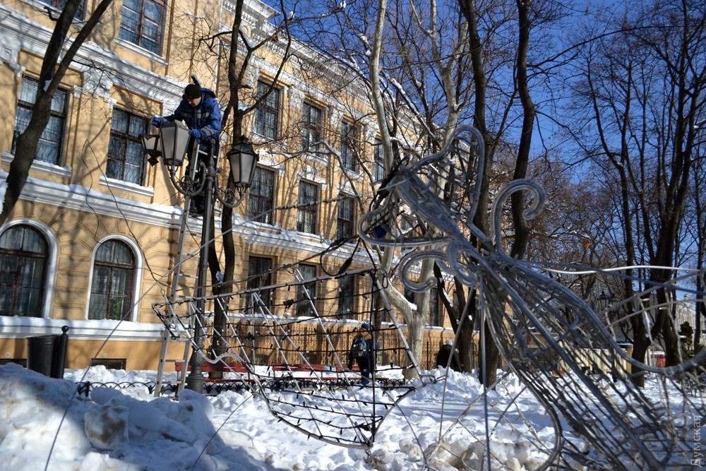 В центре Одессы коммунальные службы приступили к демонтажу праздничной иллюминации, передает корреспондент «Думской». Закончить обещают к вечеру. Фото, видео Андрей Колисниченко СМЕРТЬ РОСІЙСЬКИМ ОКУПАНТАМ! Помітили помилку? Виділяйте слова з помилкою та натискайте control-enter |