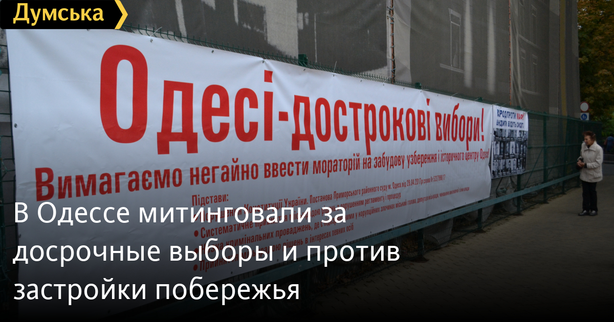 За досрочные выборы мэра и городского совета и против застройки приморских склонов и исторического центра Одессы митинговали сегодня на Думской площади. Как передает корреспондент «Думской», в акции приняли участие два десятка человек. «В городе не соблюдаются никакие нормы, автомобили стоят прямо на перекрестках, городская власть абсолютно ничем не занимается, при этом чиновники берут откаты в 50% с меньшим даже не подходи, поэтому нам такая власть не нужна», — заявил во время митинга активист Геннадий Чижов. Отметим, что митинг продлился около 40 минут, после чего протестующие разошлись. СМЕРТЬ РОССИЙСКИМ ОККУПАНТАМ! Заметили ошибку? Выделяйте слова с ошибкой и нажимайте control-enter |
