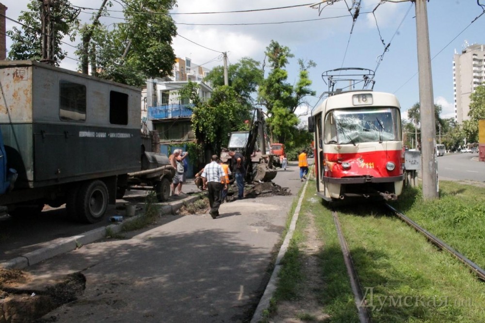 Сегодня днем на 9 станции Большого Фонтана трамвай, следовавший по маршруту №18, врезался в стоящий на рельсах грузовик ЗИЛ. Как сообщают очевидцы на «Одесском форуме», грузовик, стоящий на рельсах, загружали землей экскаваторы, которые проводили здесь работы. Трамвай двигался в сторону 10 станции Большого Фонтана. По словам рабочих, которые находились поблизости и стали свидетелями происшествия, водитель трамвая даже не пытался затормозить, чтобы избежать столкновения. Напомним, 24 июня в Одессе на проспекте Маршала Жукова трамвай столкнулся с грузовиком. В результате этого ДТП пострадали 4 человека, а 84-летняя женщина скончалась в больнице. Фото «Одесского форума» СМЕРТЬ РОСІЙСЬКИМ ОКУПАНТАМ! Помітили помилку? Виділяйте слова з помилкою та натискайте control-enter |