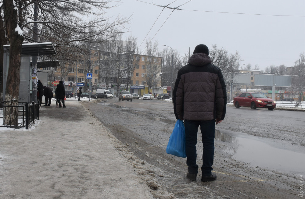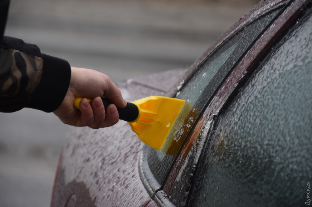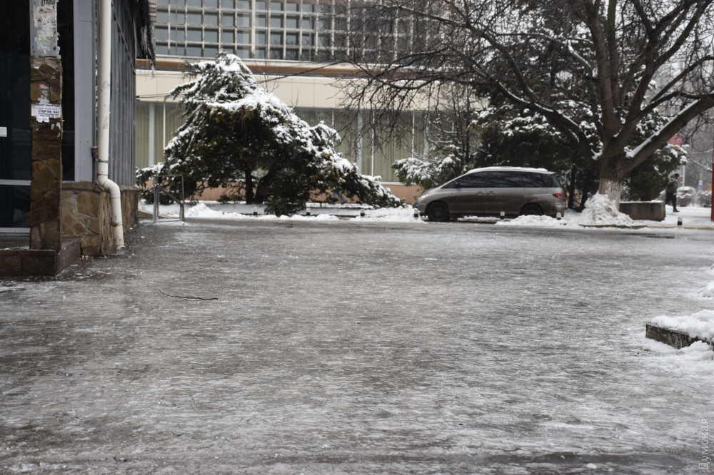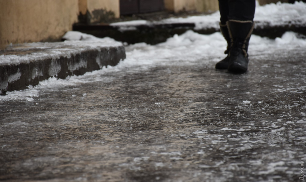 Утром после дождя при минусовой температуре на одесских улицах образовались гололед и гололедица, ситуация усугубляется сильным порывистым ветром скоростью до 18 метров в секунду.