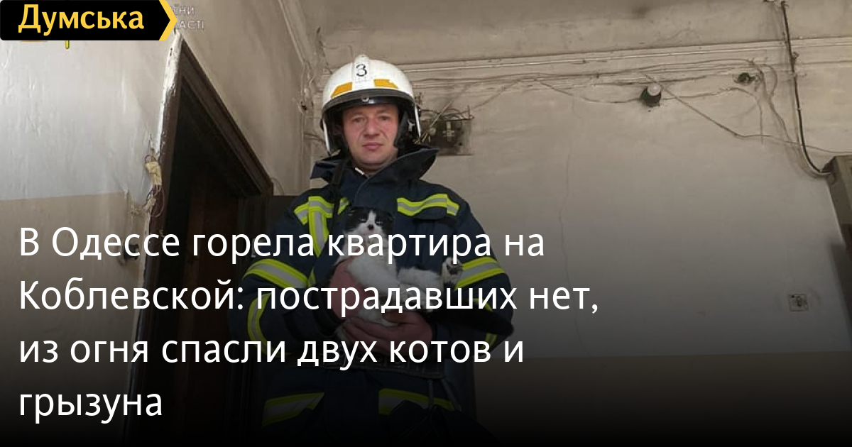 В Одессе горела квартира на Коблевской: пострадавших нет, из огня спасли двух котов и грызунаВ 08:51 в Службу спасения поступило сообщение о пожаре в жилом доме по улице Коблевской. Погибших и пострадавших нет. Об этом сообщают в ГСЧС. Горела квартира на третьем этаже трехэтажного жилого дома. На локализацию и ликвидацию пожара ушло чуть больше получаса. Из задымленной квартиры огнеборцы вынесли двух котов и маленького грызуна. Погибших и пострадавших нет. От ГСЧС привлекалось 6 единиц пожарной техники и 32 спасателя. Причина пожара устанавливается. СМЕРТЬ РОССИЙСКИМ ОККУПАНТАМ! Заметили ошибку? Выделяйте слова с ошибкой и нажимайте control-enter |