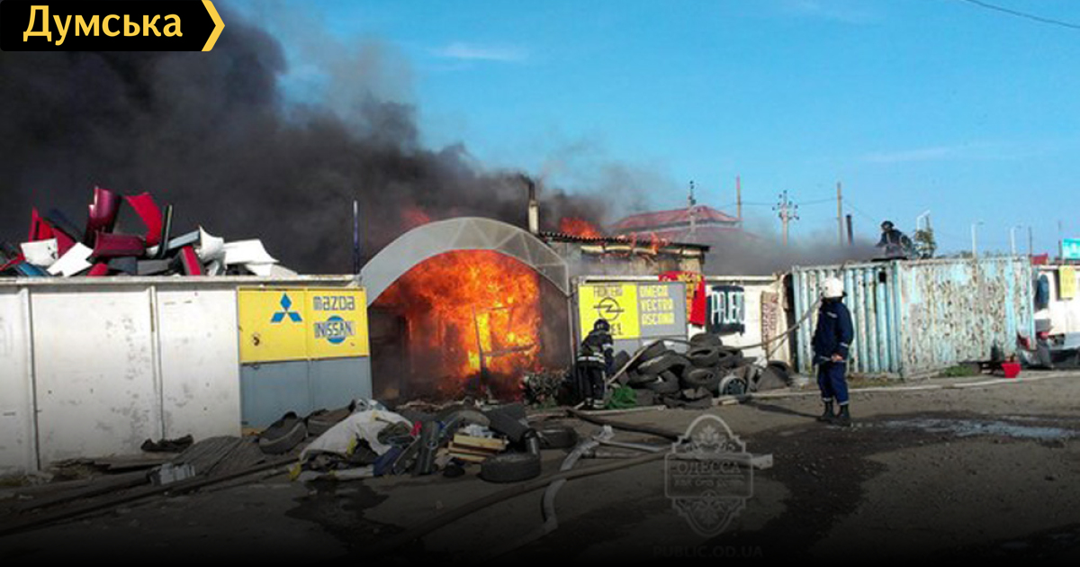 Крупный пожар произошел на территории для разборки автомобилей в районе одесского рынка «Куяльник».
