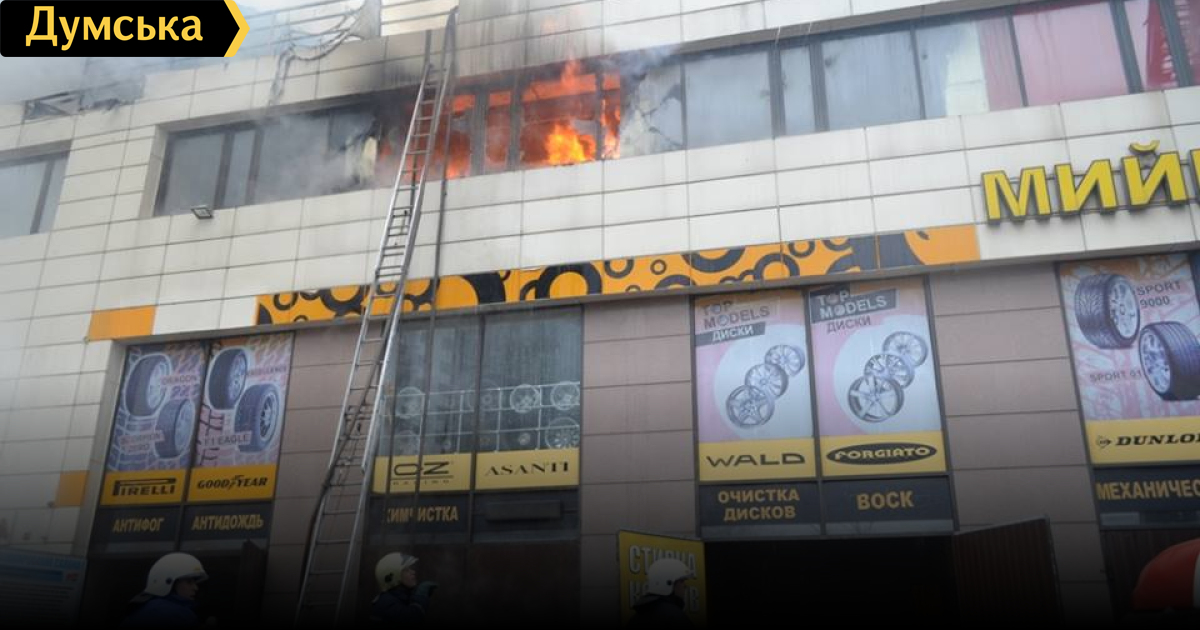 Стремный какой-то клюб, внизу мойка и шиномонтаж. Походу на крыше гадюшника передерживалась летне-зимняя резина шиномонтажа, ибо горит явно что-то резиновое.