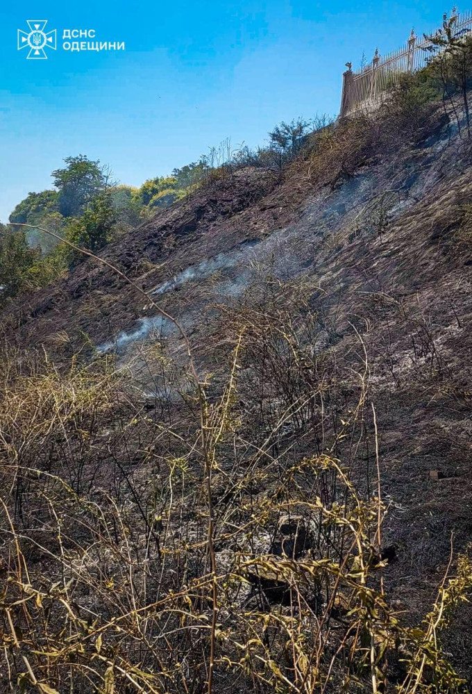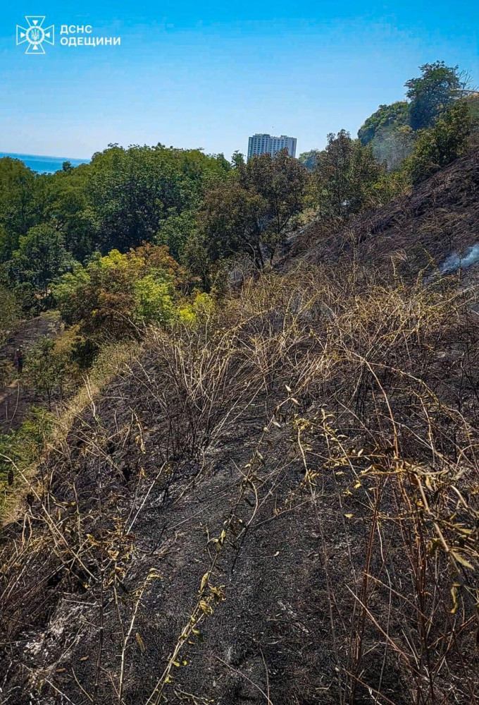 Прибрежные склоны в районе пляжа СБУ охватил огонь.
