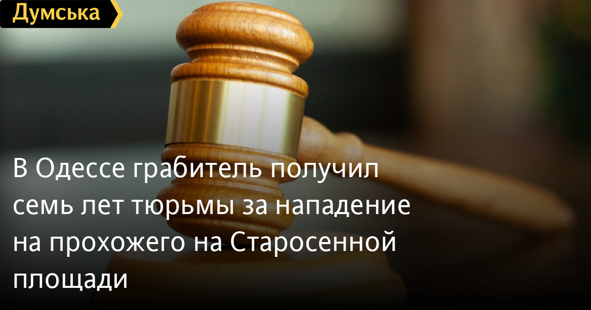 В Одесі грабіжник отримав сім років в`язниці за напад на перехожого на Старосінній площіСуд засудив 22-річного одесита до семи років позбавлення волі за пограбування чоловіка на Старосінній площі. У поліції повідомили, що інцидент стався в листопаді 2022 року. Фігурант почав розмову з незнайомцем, ув'язався за ним, у безлюдному місці розпилив потерпілому в обличчя газ із балончика і вирвав у нього з рук сумку. У сумці були банківські картки та 4500 гривень готівкою. Вкрадене майно незабаром виявили у квартирі в підозрюваного, гроші він встиг витратити. Фігуранта судили за 186-ю статтею Кримінального кодексу України (грабіж). Помітили помилку? Виділяйте слова з помилкою та натискайте control-enter Новини по цій темі: 29 липня 2025: В Усатово Одеської області сталася перестрілка: поліція працює на місці (відео, оновлено) 28 липня 2025: П'яний на "Ягуарі" або гіпертонік? Звільнений топ-посадовець одеської поліції хоче повернутися на службу 19 червня 2025: Дівчинку, яку шукали сотні одеситів, знайшли вбитою: поліція працює з чоловіком, ймовірно причетним до загибелі 27 травня 2025: Увели гектар в університету: на Одещині засудили земельних аферистів, але без посадки і Хвоста |