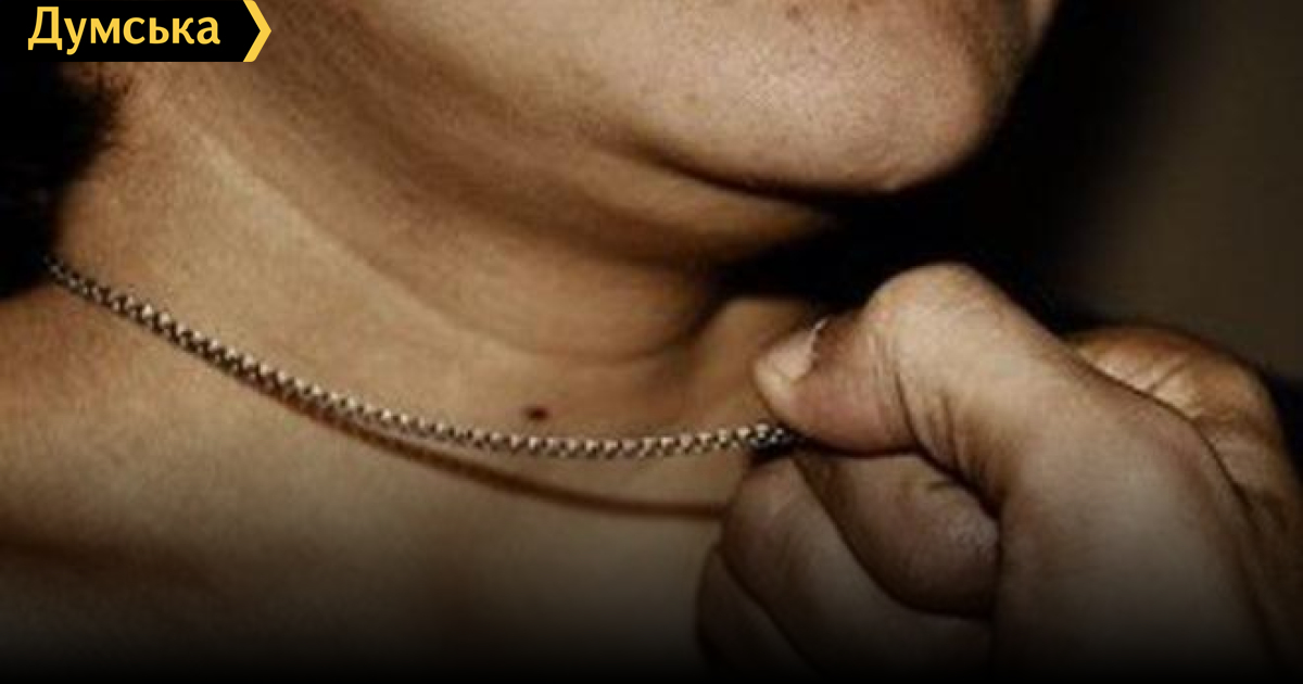Как сообщила пресс-служба ГУНП, злоумышленник подбежал к женщине, повалил ее на тротуар и сорвал с шеи золотую цепочку с подвеской стоимостью 15 тысяч гривен.