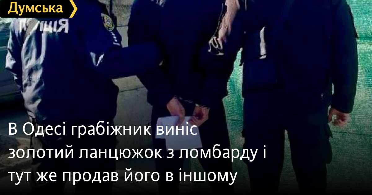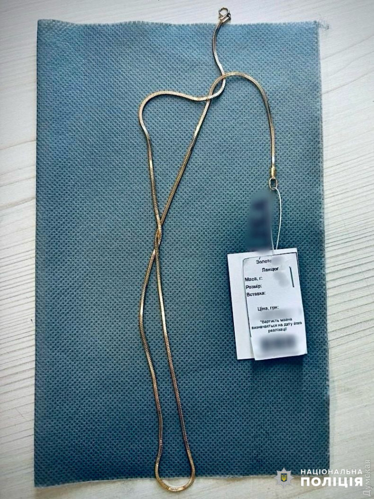 У ГУНП повідомили, що чоловік схопив золотий ланцюжок вартістю 15 тисяч гривень та вибіг із ним на вулицю. Потім він одразу ж перепродав його в іншому ломбарді.