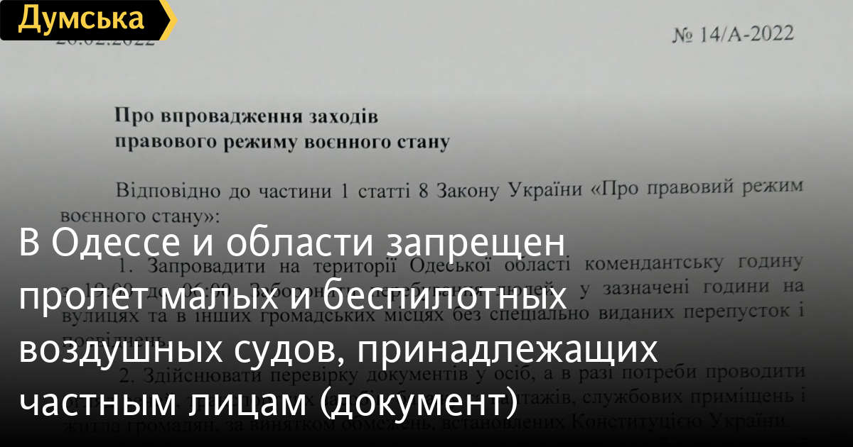 Пролет малых и беспилотных воздушных судов, принадлежащих частным лицам и компаниям, над Одесской областью запрещен.