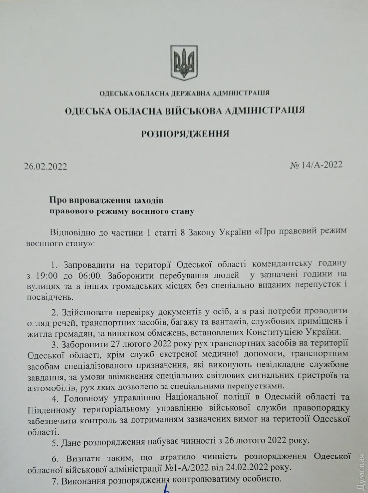 Соответствующее распоряжение сегодня подписал начальник Одесской областной военно-гражданской администрации Сергей Гриневецкий.