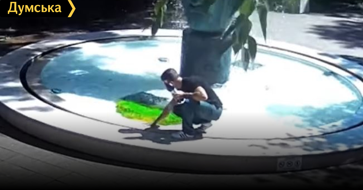 В Одессе ищут двух молодых людей, которые окрасили в желтый цвет воду фонтана в Греческом парке