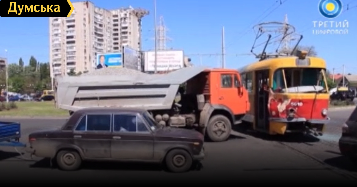 В Одессе КамАЗ врезался в трамвай: обошлось без жертв