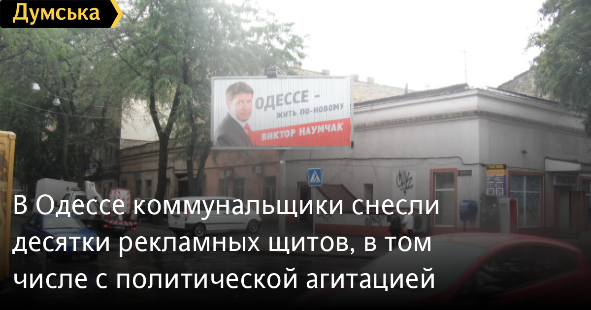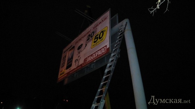 Сегодня ночью работники КП «Одесреклама» под прикрытием людей в униформе демонтировали больше двух десятков рекламных конструкций, принадлежащих компаниям «РТМ-Украина» (крупнейший национальный оператор наружки), «Сеан» и «Сити».