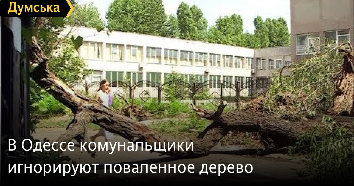 На улице Довженка, возле одного из домов, всё ещё не убрали поваленное дерево. Из-за сильного ливня, оно упало просто посреди улицы и перекрыло собой проход.