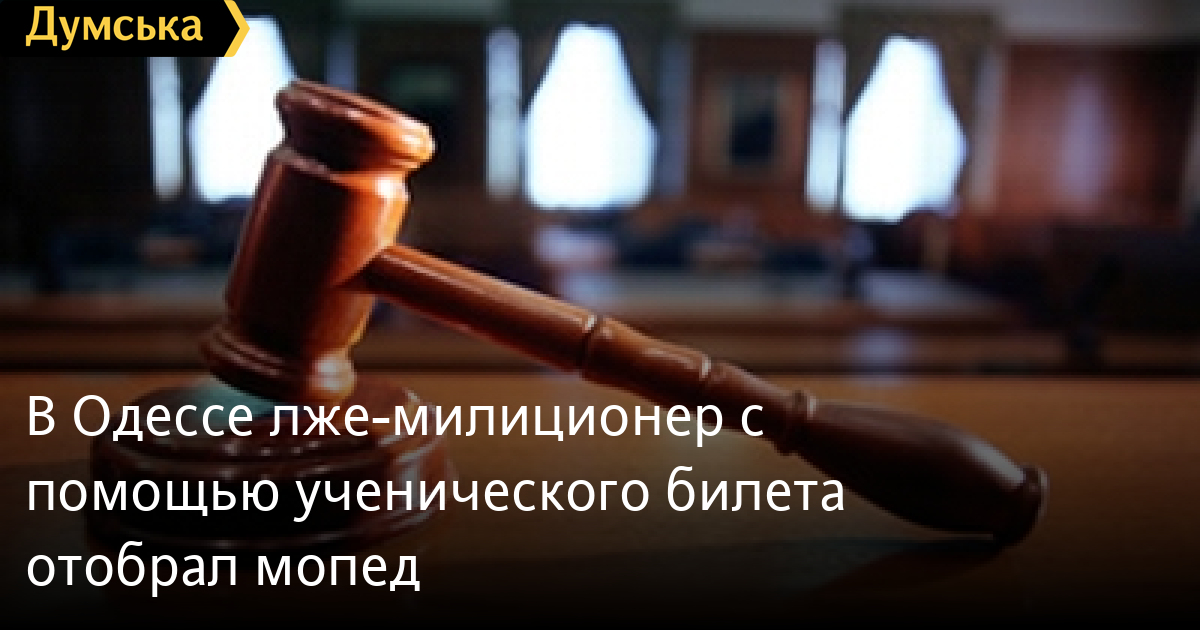 Высший специализированный суд по рассмотрению уголовных и гражданских дел оставил без изменения решение апелляционного суда Одесской области, который приговорил к 2 годам и 6 месяцам лишения свободы одессита, который в ночь на 4 декабря завладел чужим мопедом «Хонда», представившись сотрудником милиции.