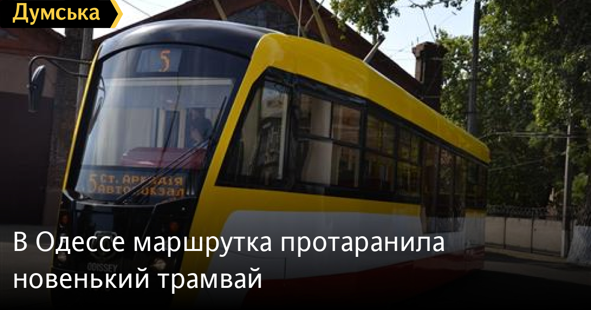 Маршрутный автобус врезался в новый трамвайный вагон модели «Одиссей», который совершал поворот на перекрестке улиц Пантелеймоновской и Старопортофранковской.