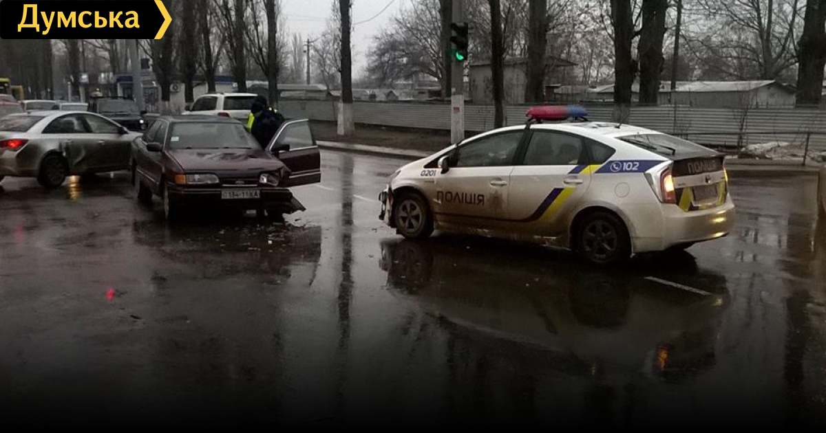 Как сообщают очевидцы, полицейская «Тойота Приус» поворачивала налево с 25-й Чапаевской и столкнулась с двигающимся навстречу автомобилем «Форд Скорпио». Оба авто получили повреждения. По предварительным данным, пострадавших нет.