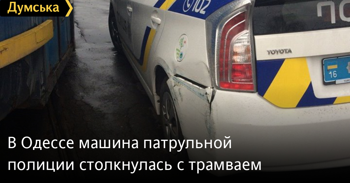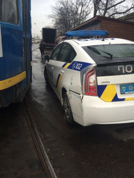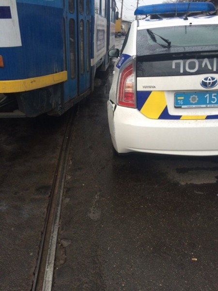 Вчера возле Привоза произошло ДТП с участием автомобиля патрульной полиции и трамвая.
