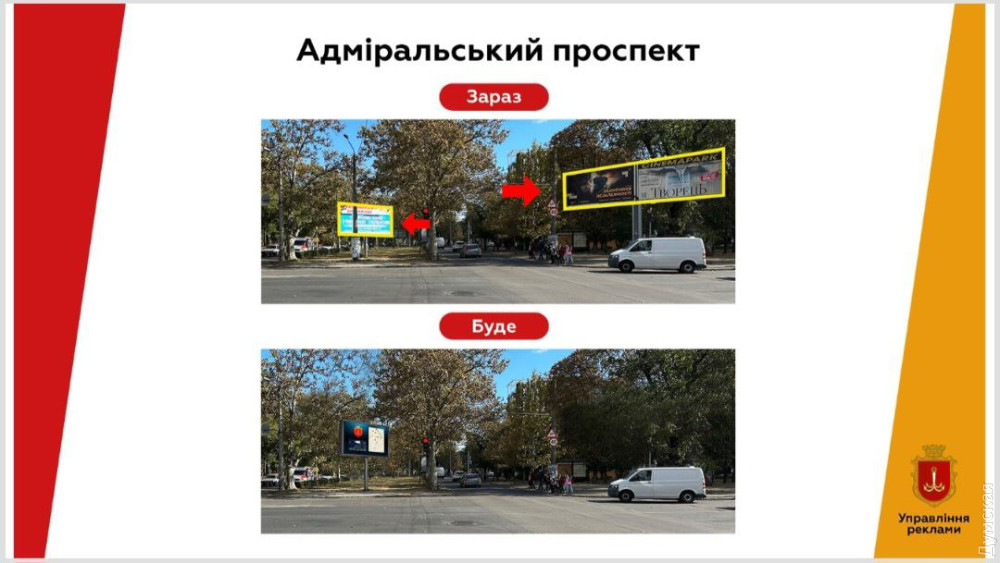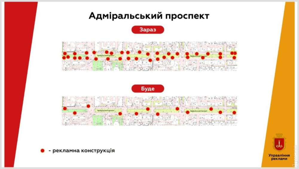 «Проведено переговори з власниками рекламних конструкцій щодо зменшення кількості зовнішньої реклами в нашому місті. Знайдено розуміння — кількість носіїв буде скорочено майже вдвічі. Крім того, планується поступове оновлення та приведення рекламних конструкцій до сучасного вигляду», — повідомив мер Одеси Геннадій Труханов.