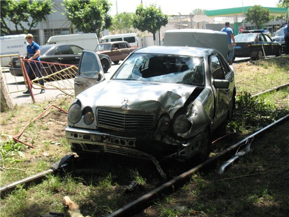 В Одессе «Мерседес» после столкновения приземлился на трамвайные пути