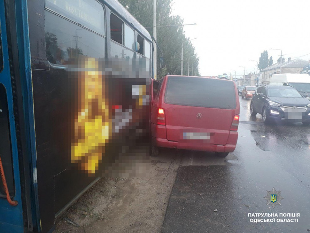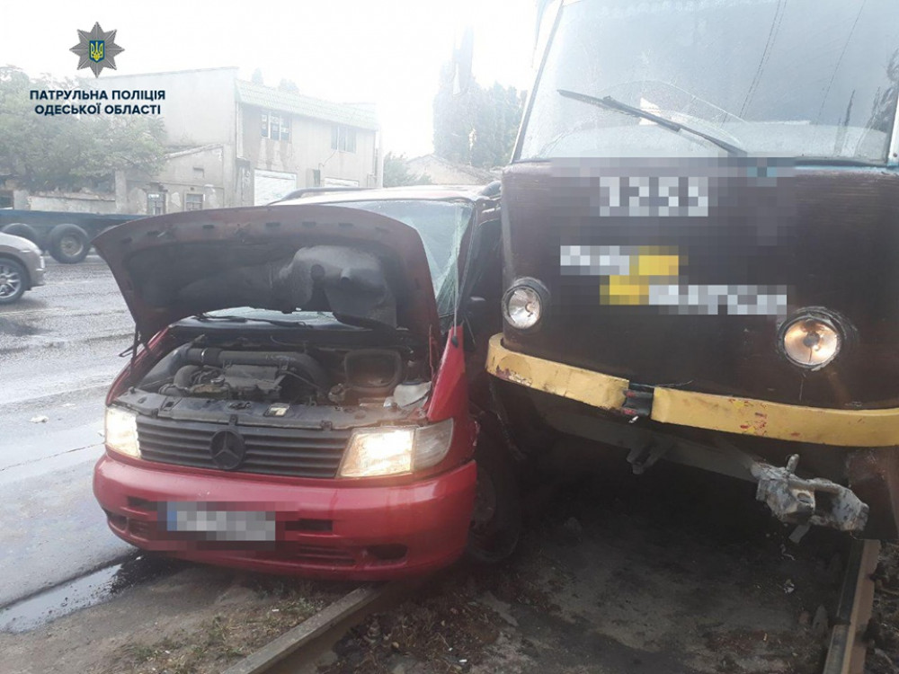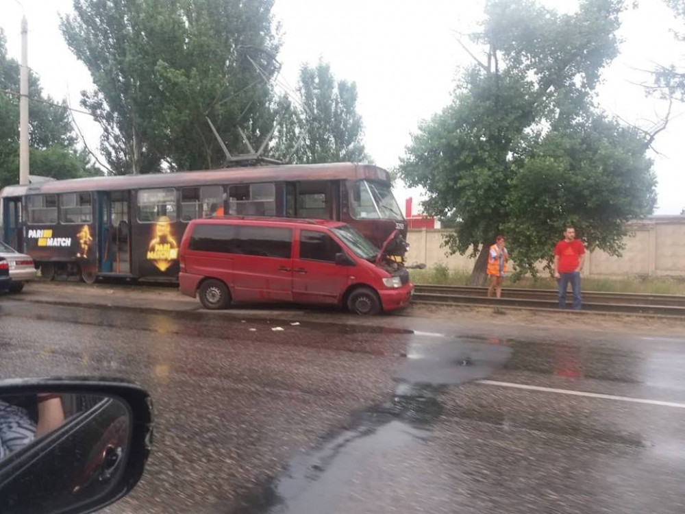 Трамвай и микроавтобус «Мерседес» столкнулись сегодня, 27 июня, на Николаевской дороге в Одессе.