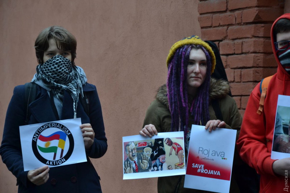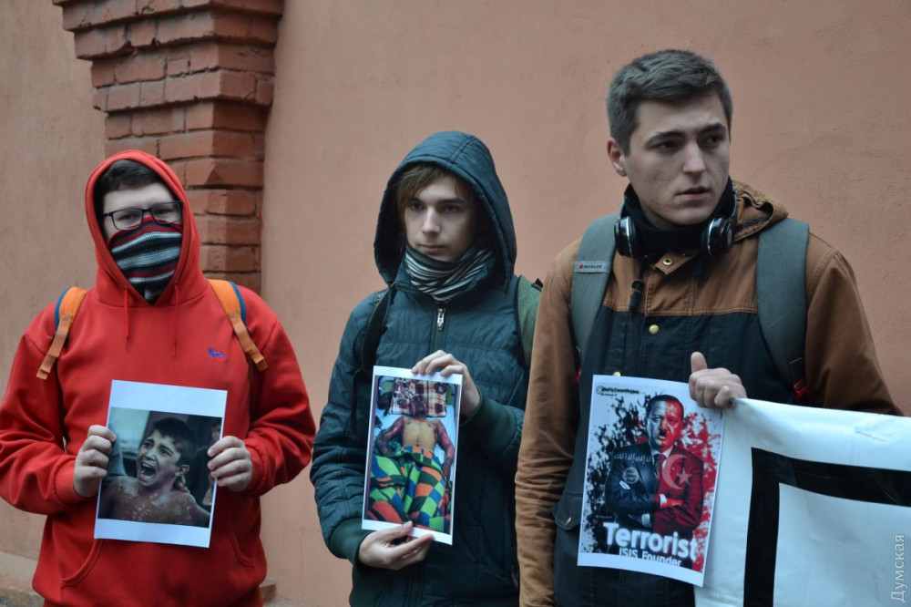 Сегодня в Одессе, на тихой улочке Отрадной, прошел необычный митинг – полтора десятка молодых ребят и девушек выступили против… турецкой агрессии.