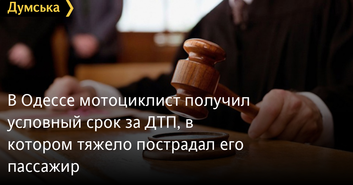 В Одессе мотоциклист получил условный срок за ДТП, в котором тяжело пострадал его пассажирКиевский райсуд Одессы приговорил к трем годам лишения свободы с годичным испытательным сроком мотоциклиста, который 9 мая устроил серьезное ДТП в районе Дачи Ковалевского. В судебном решении отмечается, что в результате аварии тяжело пострадал пассажир мотоцикла – у мужчины была открытая черепно-мозговая травма, линейный перелом лобной кости черепа, осколочный перелом правой скулы, ушиб головного мозга, перелом шестого позвонка, ушиб шейного отдела позвоночника, многочисленные раны и ссадины. Установлено, что двигаясь по улице Николая Троицкого, выехав на поворот, мотоциклист не справился с управлением и на всем ходу влетел в забор. Фигурант признал свою вину в преступлении, предусмотренном ч.2 ст.286 УК Украины (нарушение правил безопасности дорожного движения) и заключил сделку с прокурором. Также он возместил нанесенный ущерб. Кроме условного срока, мотоциклиста на год лишили прав на вождение. СМЕРТЬ РОССИЙСКИМ ОККУПАНТАМ! Заметили ошибку? Выделяйте слова с ошибкой и нажимайте control-enter |