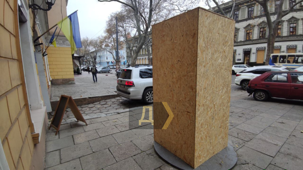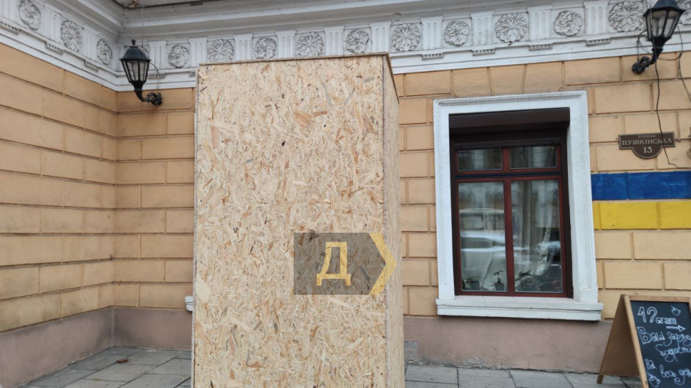 Пам'ятник Олександру Пушкіну біля музею поета закрили з усіх боків дерев'яними щитами.