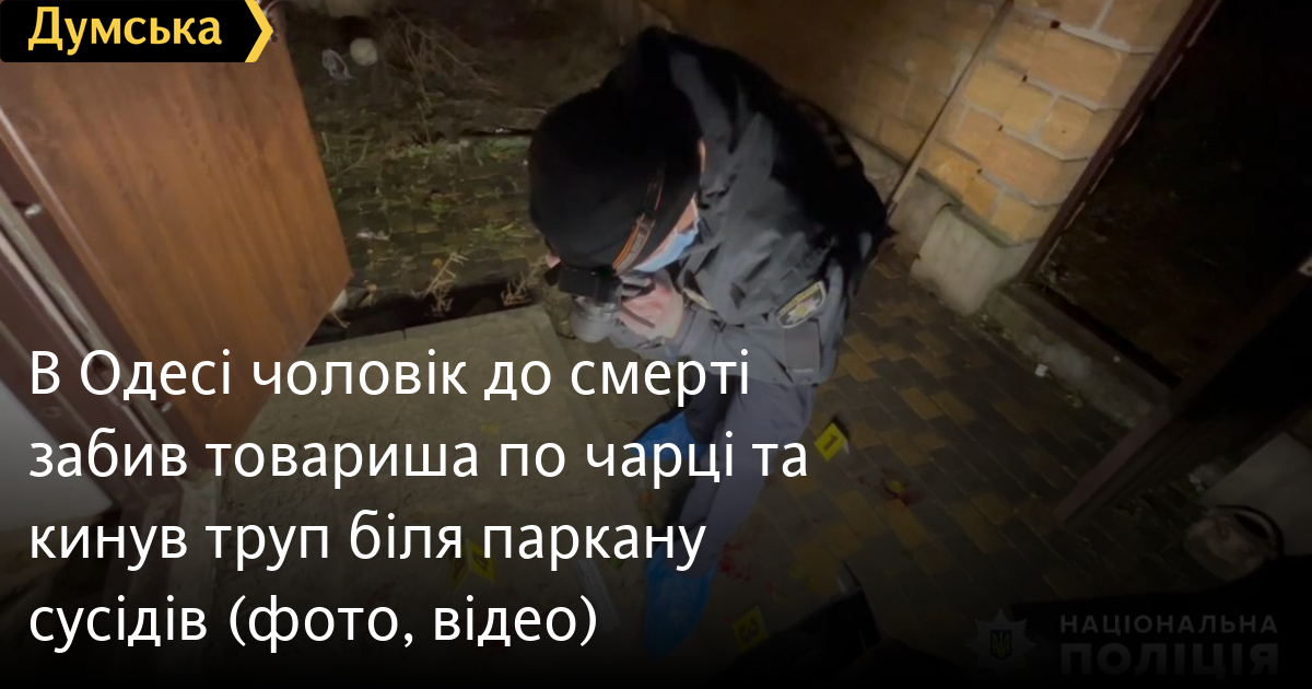 В Одесі чоловік до смерті забив товариша по чарці та кинув труп біля паркану сусідів (фото, відео)Поліція затримала одесита, який під час пиятики жорстоко побив новоспеченого знайомого. Унаслідок отриманих травм чоловік незабаром помер. В обласному управлінні Нацполіції повідомили, що інцидент стався в приватному будинку на 10-й Суворовській вулиці. Щоб приховати свою причетність до інциденту, фігурант відволік тіло потерпілого до будинку сусідів через дорогу. Вранці вони виявили труп і викликали правоохоронців. З'ясувалося, що незадовго до рукоприкладства чоловіки познайомилися в місцевому магазині. Господар будинку запросив нового товариша до себе випити. Під час застілля він запідозрив, що гість вкрав у нього 200 доларів і накинувся на нього з кулаками. Інцидент кваліфікували за 121-ю статтею Кримінального кодексу України (умисне тяжке тілесне ушкодження, що спричинило смерть потерпілого). Затриманому загрожує від семи до десяти років в'язниці. Помітили помилку? Виділяйте слова з помилкою та натискайте control-enter |