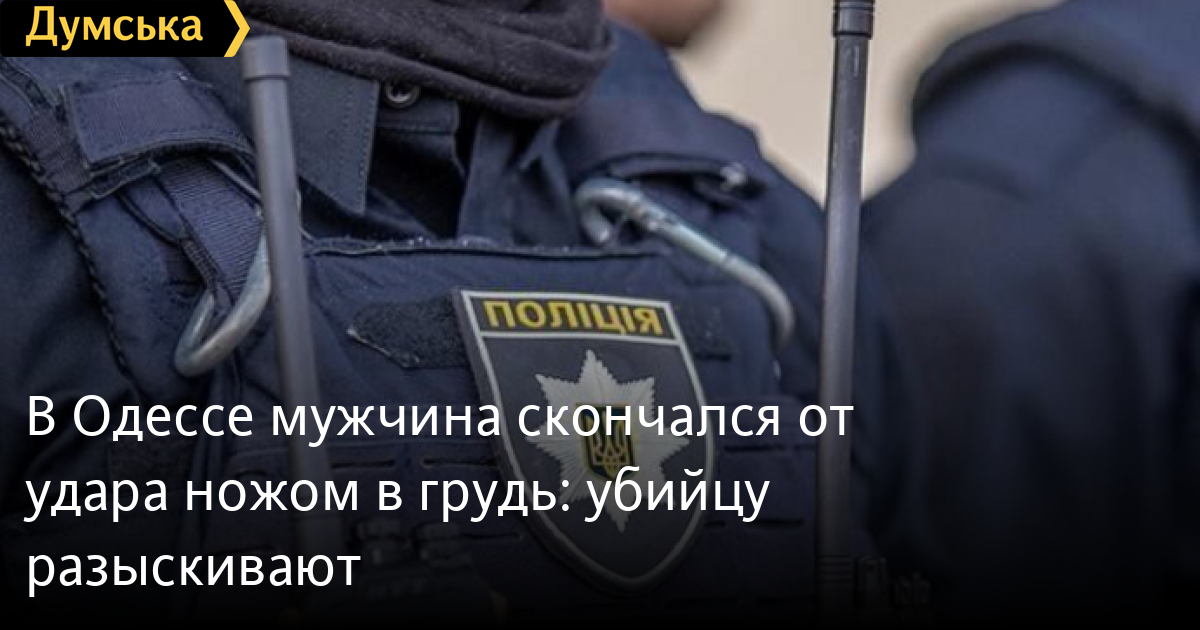 В Одесі чоловік помер від удару ножем у груди: вбивцю розшукують33-річного чоловіка було госпіталізовано ввечері 15 листопада до Одеської обласної лікарні з ножовим пораненням лівої частини грудної клітки. Як повідомили «Думській» у правоохоронних органах, невдовзі постраждалий помер. Поліція встановлює обставини, за яких чоловік отримав поранення та особу вбивці. Помітили помилку? Виділяйте слова з помилкою та натискайте control-enter Новини по цій темі: 29 липня 2025: В Усатово Одеської області сталася перестрілка: поліція працює на місці (відео, оновлено) 28 липня 2025: П'яний на "Ягуарі" або гіпертонік? Звільнений топ-посадовець одеської поліції хоче повернутися на службу 19 червня 2025: Дівчинку, яку шукали сотні одеситів, знайшли вбитою: поліція працює з чоловіком, ймовірно причетним до загибелі 27 травня 2025: Увели гектар в університету: на Одещині засудили земельних аферистів, але без посадки і Хвоста |