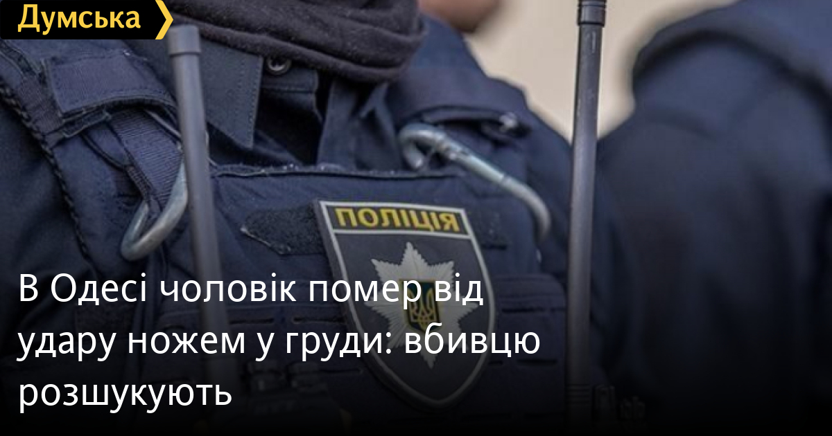 В Одесі чоловік помер від удару ножем у груди: вбивцю розшукують33-річного чоловіка було госпіталізовано ввечері 15 листопада до Одеської обласної лікарні з ножовим пораненням лівої частини грудної клітки. Як повідомили «Думській» у правоохоронних органах, невдовзі постраждалий помер. Поліція встановлює обставини, за яких чоловік отримав поранення та особу вбивці. Помітили помилку? Виділяйте слова з помилкою та натискайте control-enter Новини по цій темі: 29 липня 2025: В Усатово Одеської області сталася перестрілка: поліція працює на місці (відео, оновлено) 28 липня 2025: П'яний на "Ягуарі" або гіпертонік? Звільнений топ-посадовець одеської поліції хоче повернутися на службу 19 червня 2025: Дівчинку, яку шукали сотні одеситів, знайшли вбитою: поліція працює з чоловіком, ймовірно причетним до загибелі 27 травня 2025: Увели гектар в університету: на Одещині засудили земельних аферистів, але без посадки і Хвоста |