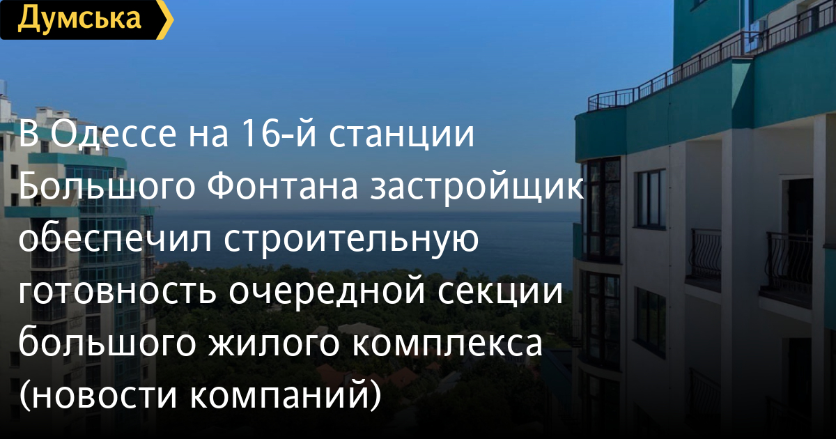 Одесский застройщик обеспечил строительную готовность новой секции жилого комплекса Aqua Marine на 16-й Фонтана. Речь идет о секции В дома №3.