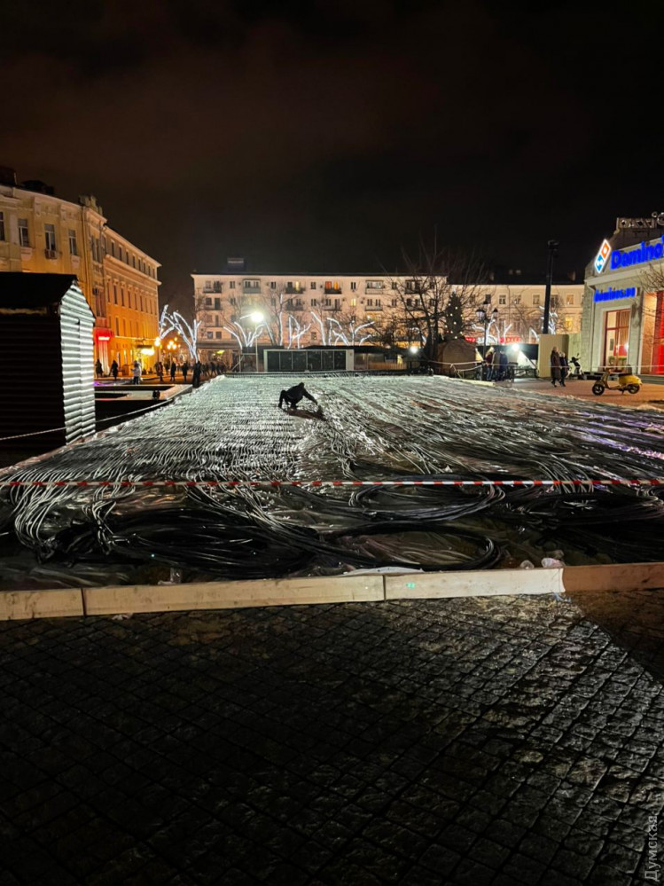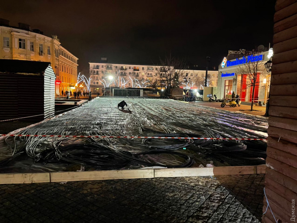 Ледовый каток начали монтировать на Греческой площади Одессы сегодня вечером.