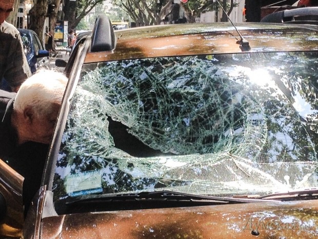 Ветка длиной метров пять оказалась в салоне через несколько минут после того как водитель отошел от автомобиля.