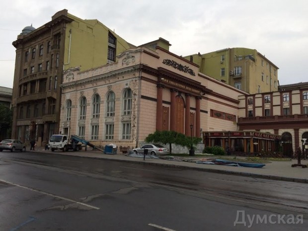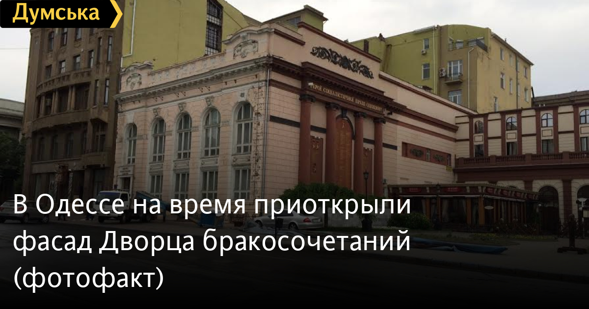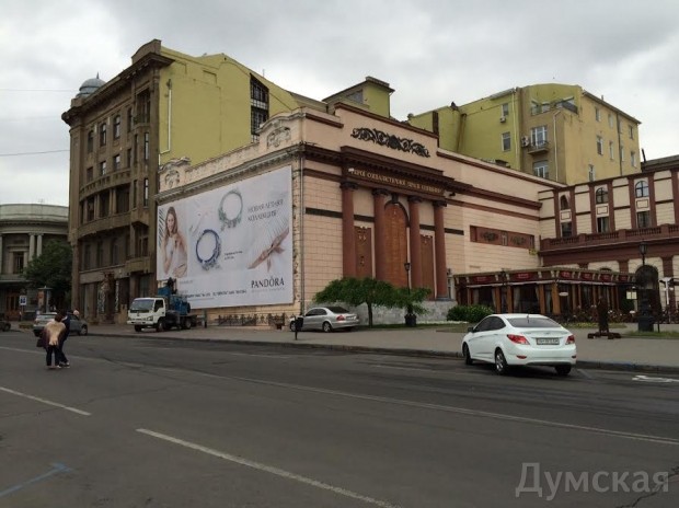 Сегодня утром в Одессе сняли рекламный баннер, закрывающий фасад Дворца бракосочетаний, который сейчас пытается вернуть в коммунальную собственность прокуратура.