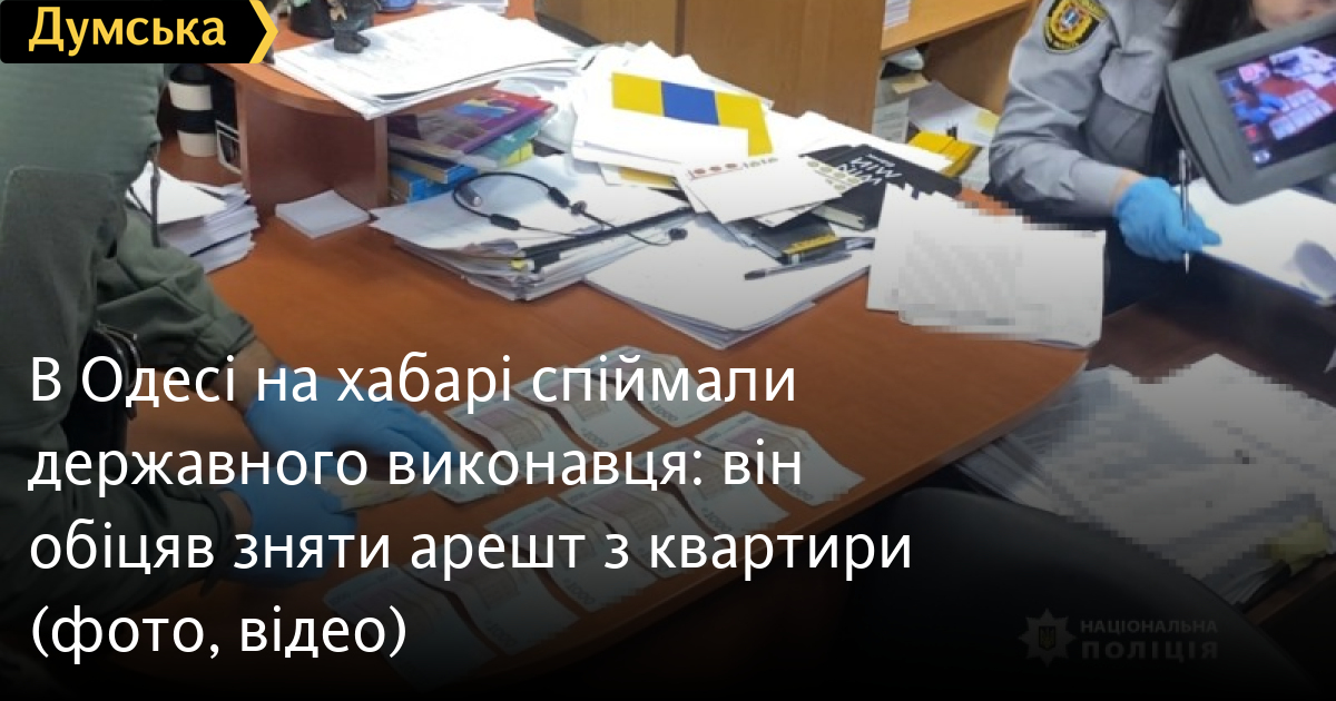 В Одесі на хабарі спіймали державного виконавця: він обіцяв зняти арешт з квартири (фото, відео)За підозрою в одержанні неправомірної вигоди затримали державного виконавця в Одесі. Посадовця взяли на гарячому — одразу після отримання 12 500 гривень, повідомили в поліції регіону. За версією слідства, державний виконавець пообіцяв одеситу пришвидшити процес зняття арешту з його квартири, накладеного в рамках виконавчого провадження. Фігуранту повідомили про підозру в одержанні неправомірної вигоди для себе за вчинення в інтересах того, хто надає неправомірну вигоду, будь-якої дії з використанням службового становища, поєднане з вимаганням неправомірної вигоди. Затриманому загрожує до десяти років ув'язнення з позбавленням права обіймати певні посади чи займатися певною діяльністю на строк до трьох років, з конфіскацією майна. Поліцейські помістили підозрюваного до ізолятора тимчасового тримання і клопочуть щодо обрання йому запобіжного заходу у вигляді тримання під вартою. СМЕРТЬ РОСІЙСЬКИМ ОКУПАНТАМ! Помітили помилку? Виділяйте слова з помилкою та натискайте control-enter Новини по цій темі: 29 липня 2025: В Усатово Одеської області сталася перестрілка: поліція працює на місці (відео, оновлено) 28 липня 2025: П'яний на "Ягуарі" або гіпертонік? Звільнений топ-посадовець одеської поліції хоче повернутися на службу 19 червня 2025: Дівчинку, яку шукали сотні одеситів, знайшли вбитою: поліція працює з чоловіком, ймовірно причетним до загибелі 27 травня 2025: Увели гектар в університету: на Одещині засудили земельних аферистів, але без посадки і Хвоста |