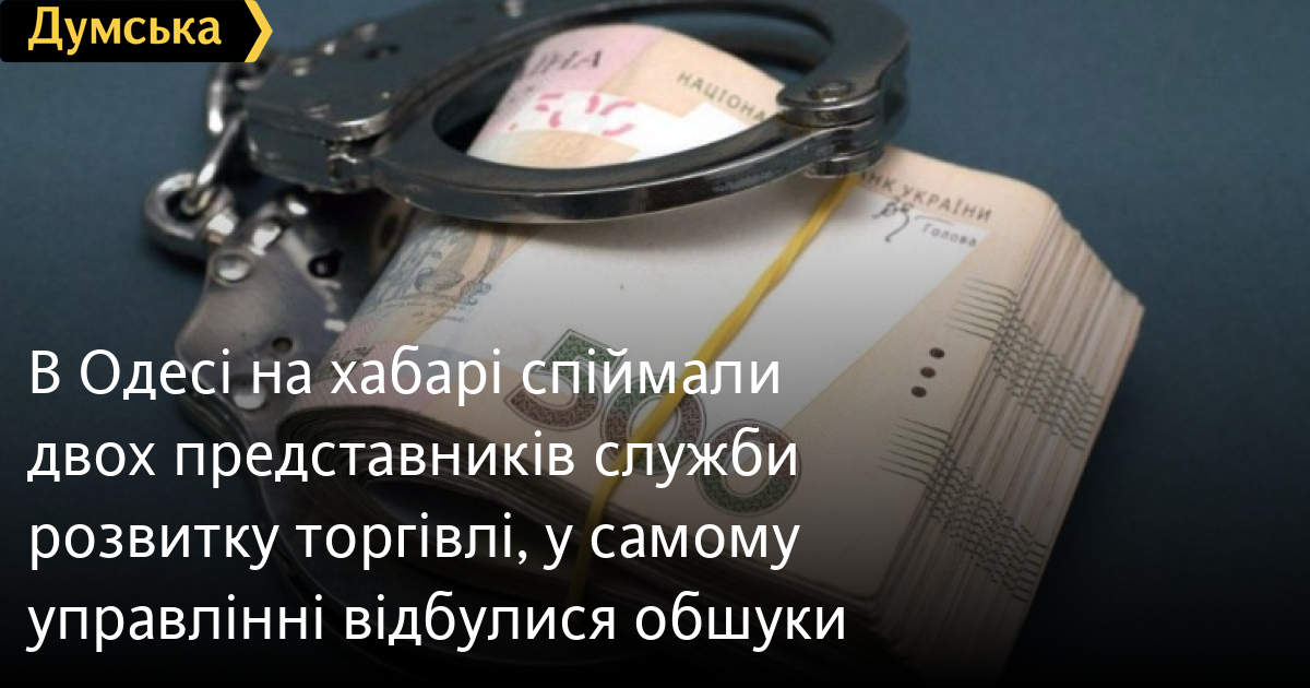 В Одесі на хабарі спіймали двох представників служби розвитку торгівлі, у самому управлінні відбулися обшукиПредставників муніципальної служби розвитку торгівлі Одеської міськради викрили на хабарництві. Двох головних фахівців відділу стихійної торгівлі буквально спіймали за руку під час отримання 8 000 гривень від підприємця, повідомили «Думській» власні джерела. Одного з фігурантів затримали, другого — опитали та відпустили під особисті зобов'язання. Вирішується питання про повідомлення обом про підозру в хабарництві (ч. 3 ст. 368 Кримінального кодексу України). Слідчі дії відбувалися під час досудового розслідування, розпочатого за тією ж 368 статтею. Паралельно відбувалися обшуки й в самому управлінні торгівлі. За даними «Думской», там відбулася виїмка документів, так званої чорної бухгалтерії, цілих томів із даними про те, які підприємці за що і скільки «доплачують» співробітникам управління за можливість нормально працювати. Джерело уточнило, що другий фігурант (якого відпустили) проходить як обвинувачений у справі про незаконне зберігання наркотиків. Її розглядає Приморський районний суд Одеси. СМЕРТЬ РОСІЙСЬКИМ ОКУПАНТАМ! Помітили помилку? Виділяйте слова з помилкою та натискайте control-enter |