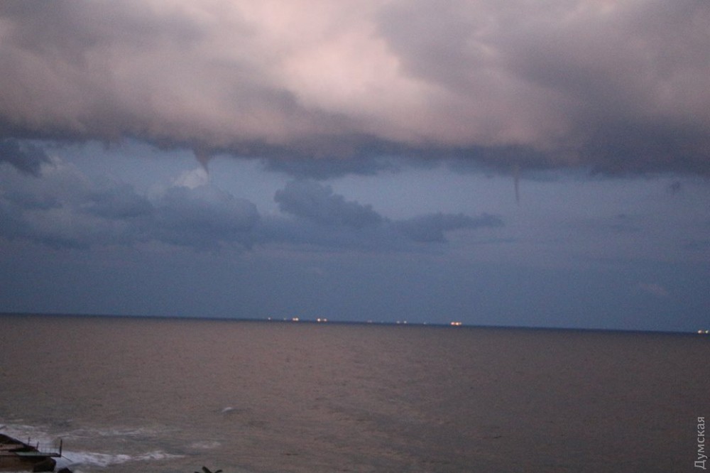 Вихри возникли примерно в 20:00 в грозовом облаке, которое проходило над морем недалеко от Одессы. Они держались минут десять, потом исчезли, так и не достав до воды.