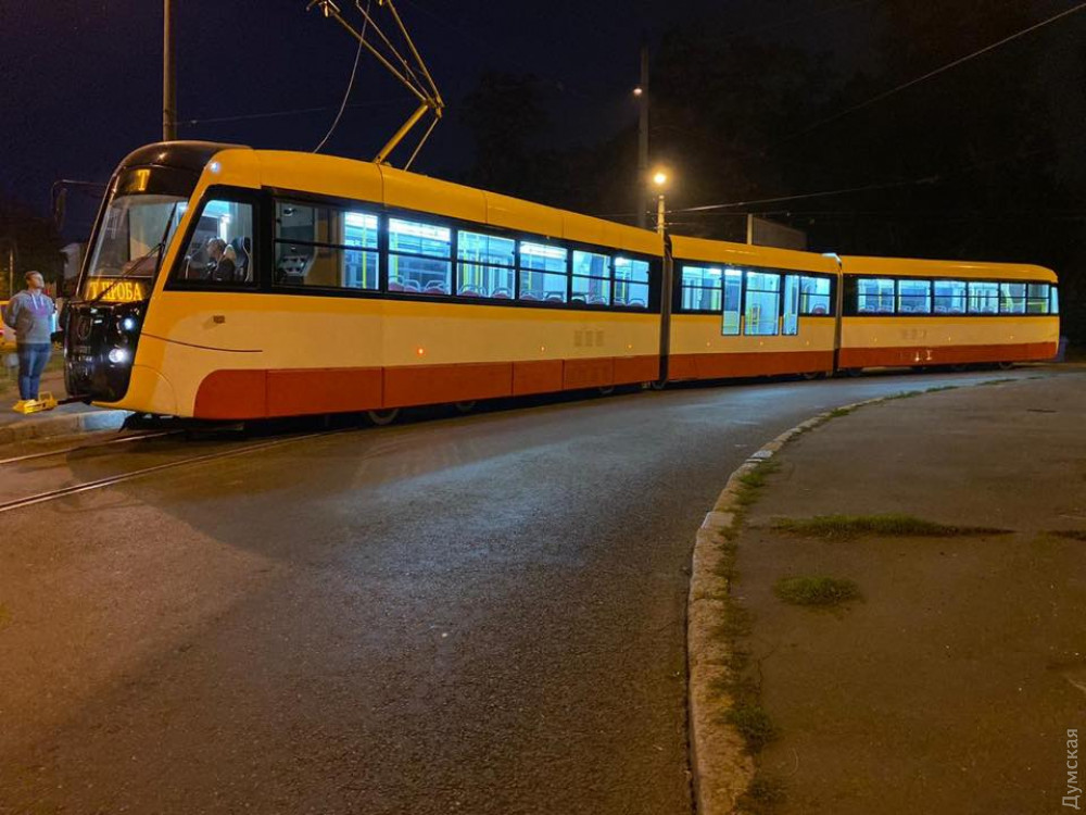Минувшей ночью на улицы Одессы впервые вышел последний «выпускник» вагоноремонтных мастерских КП «Одесгорэлектротранс» — трехсекционный вагон «Одиссей MAX».